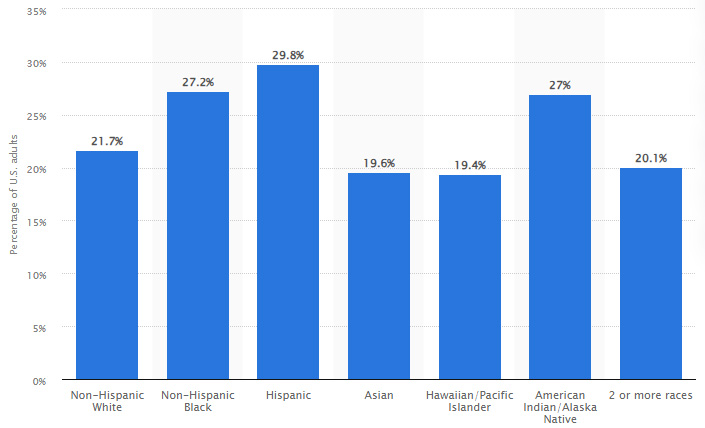 Prevalence of physical inactivity by race and/or ethnicity (included from Statista).