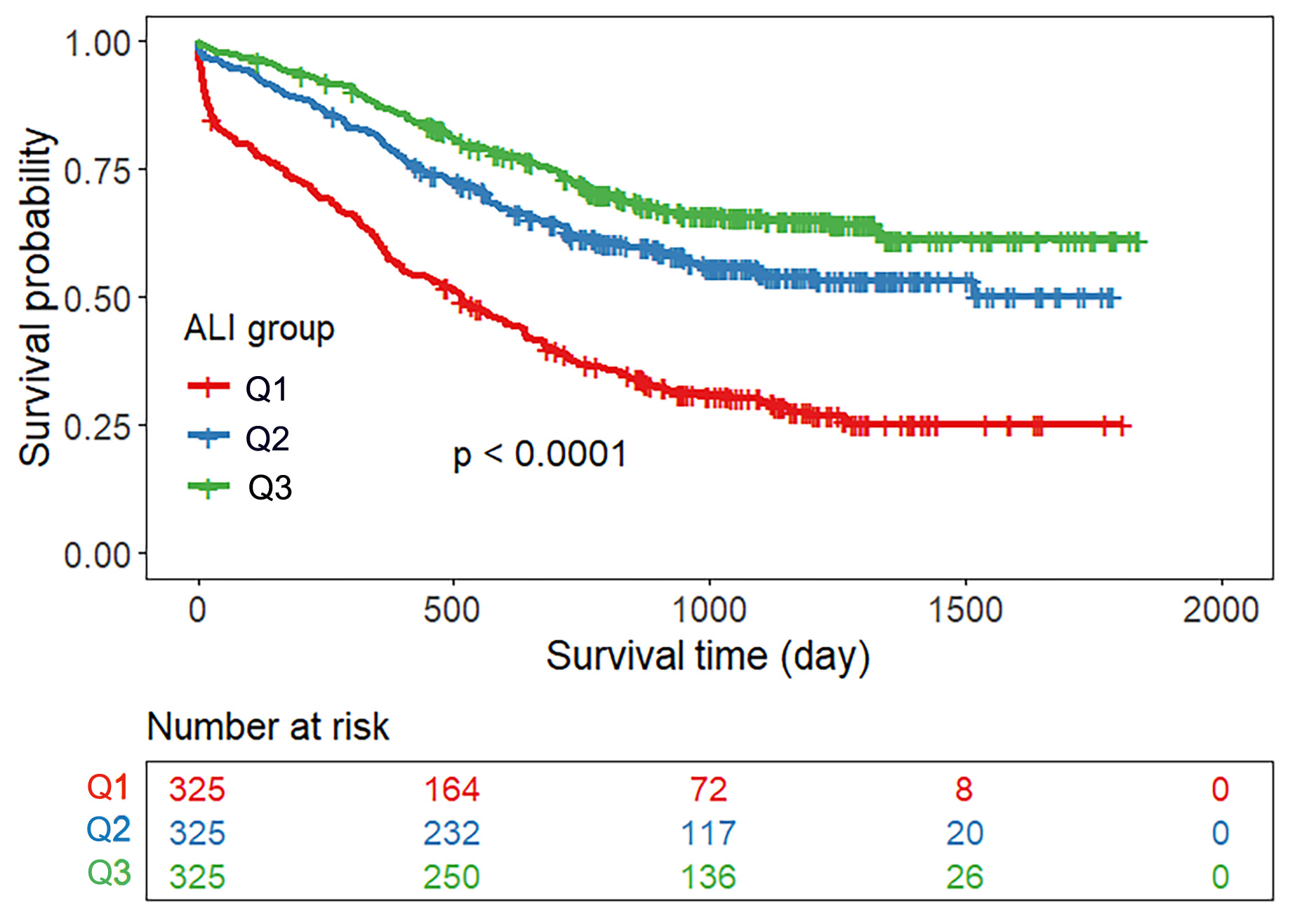 The cohort was divided into three groups using the ALI tertile cutoffs: a low