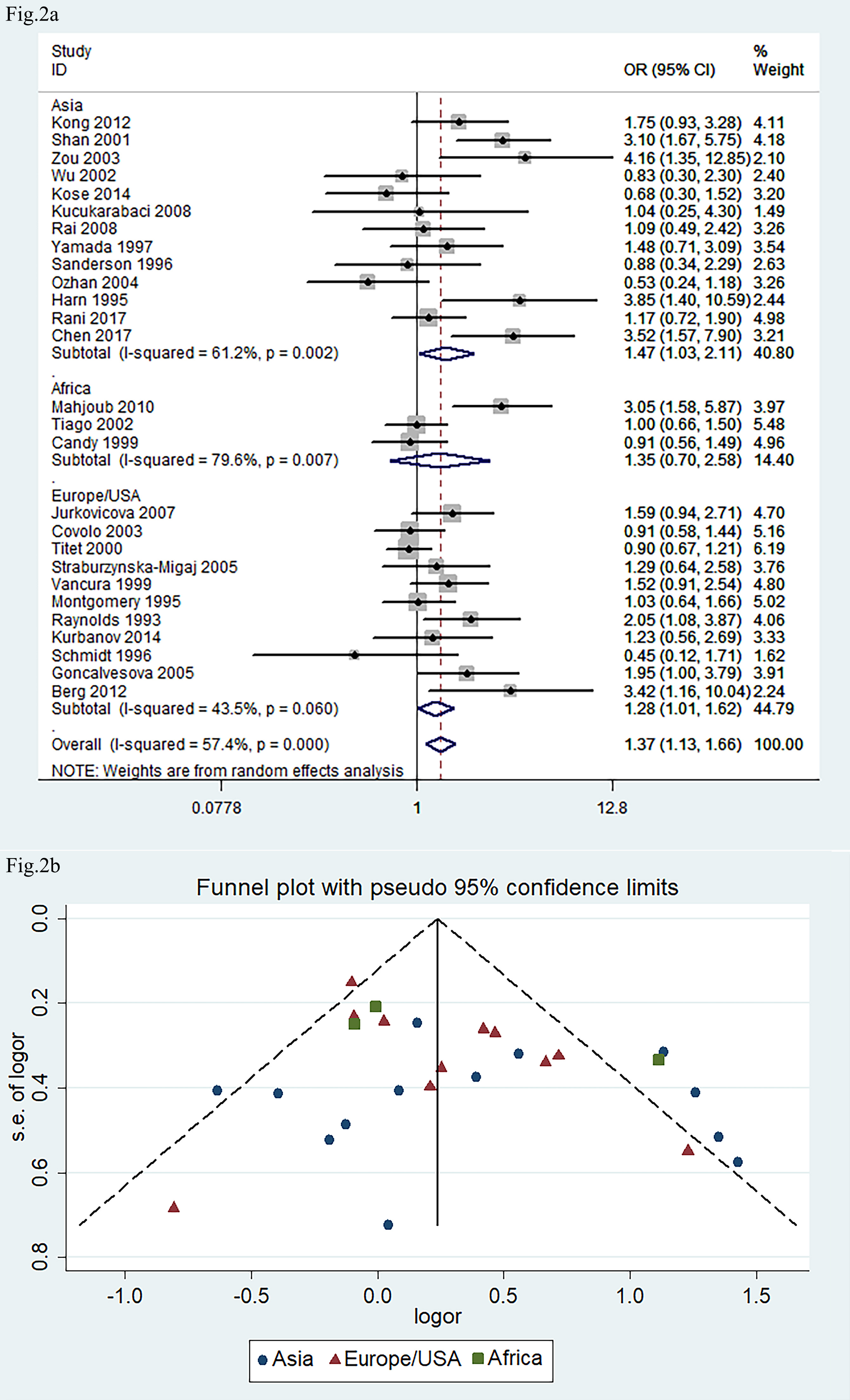 DI+II genotypes. The pooled OR was 1.37 (95% CI: 1.13, 1.66; p