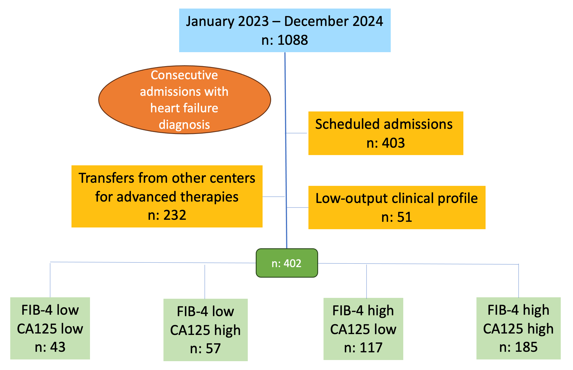 HF is a highly prevalent condition that shortens life expectancy and significantly impairs quality of life [1]. Throughout its natural course, patients frequently experience clinical worsening, including hospital emergency visits due to congestion and readmissions for decompensation [14]. Some biomarkers, such as CA125 and FIB-4, have been associated with worse clinical trajectories, although their role in the context of HF is still being clarified [9].
