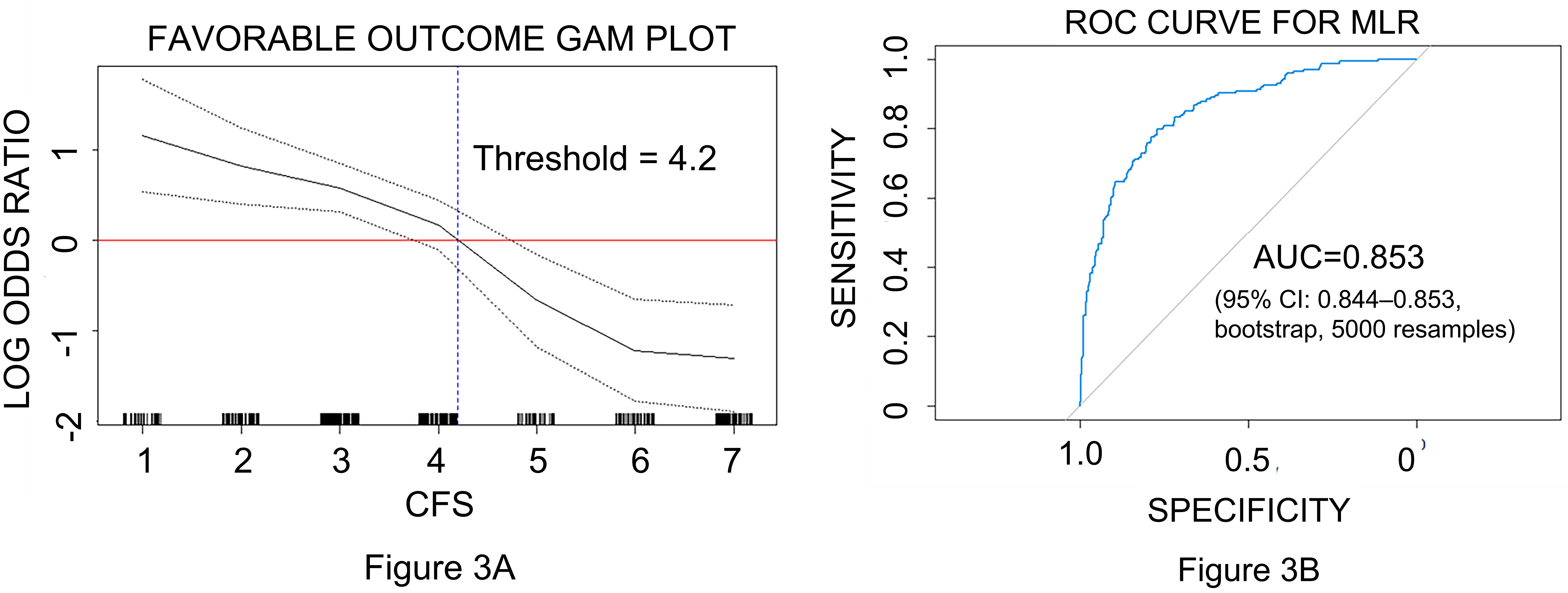 The GAM plot in Fig. 3A shows the relationship between favorable neurological outcomes and the CFS.