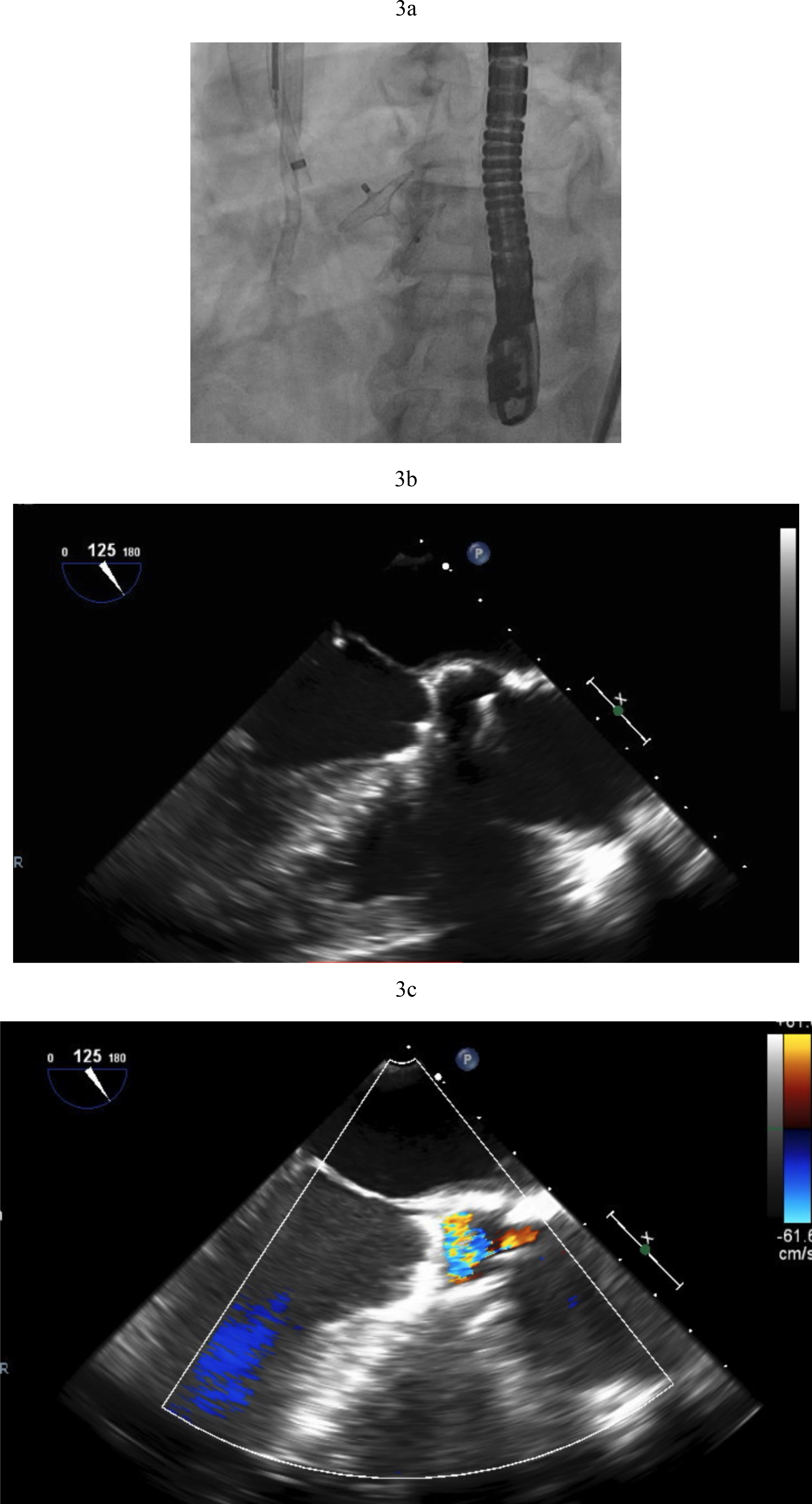 Transcatheter AV closure was first reported in 2011 using Amplatzer Septal Occluders (Abbott Structural, Minneapolis, MN, USA). However, while this is a relatively uncomplicated procedure, long term outcomes are not favorable. Mortality in small case series is high with poor long term survival of 30% at 6 months [15]. Hemolysis is expected for a period of days after deployment until the device is fully endothelialized (Fig. 3a–c).