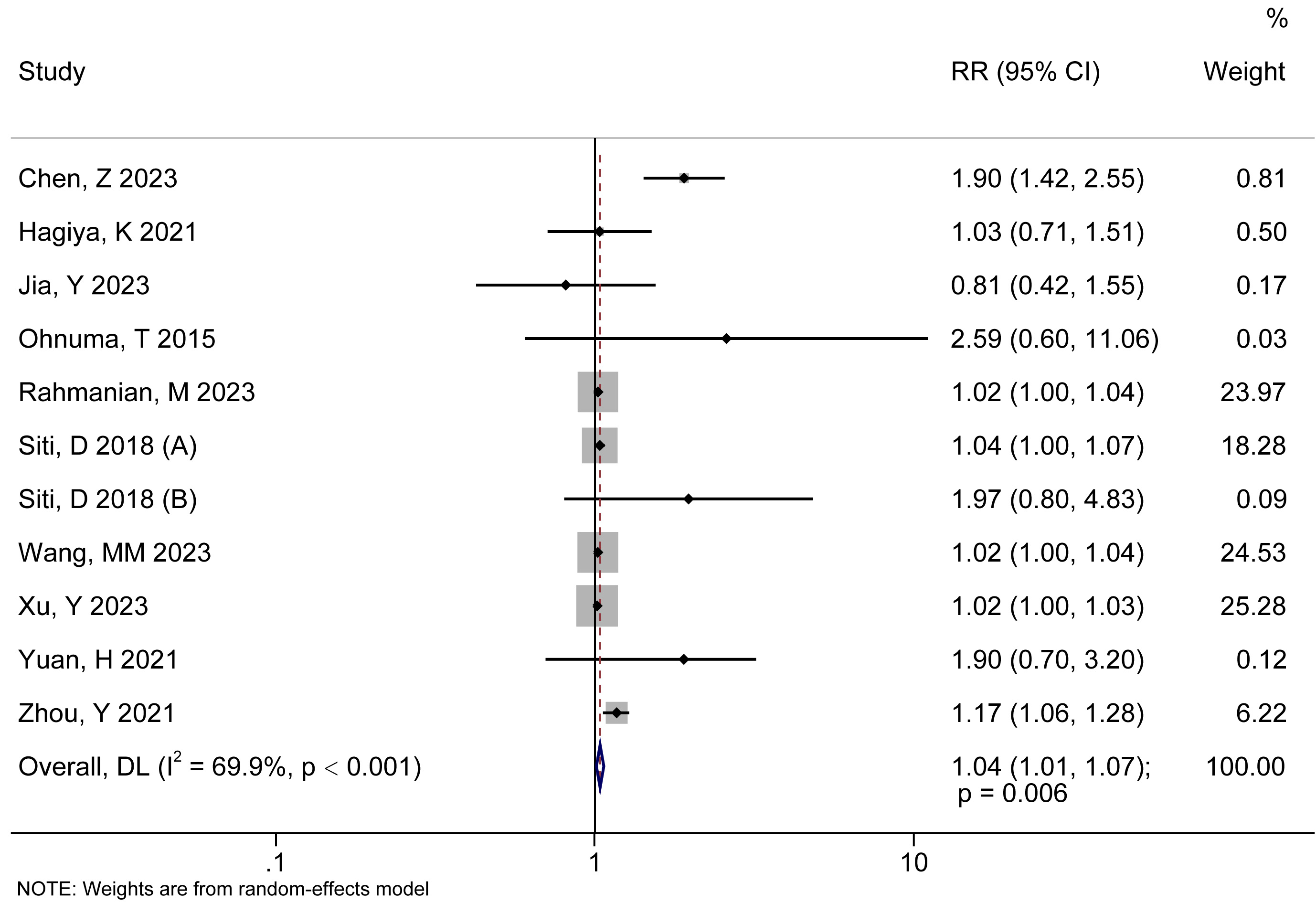 | Total | 11 | 1.04 (1.01, 1.07) | 0.006 | 69.9 | ||