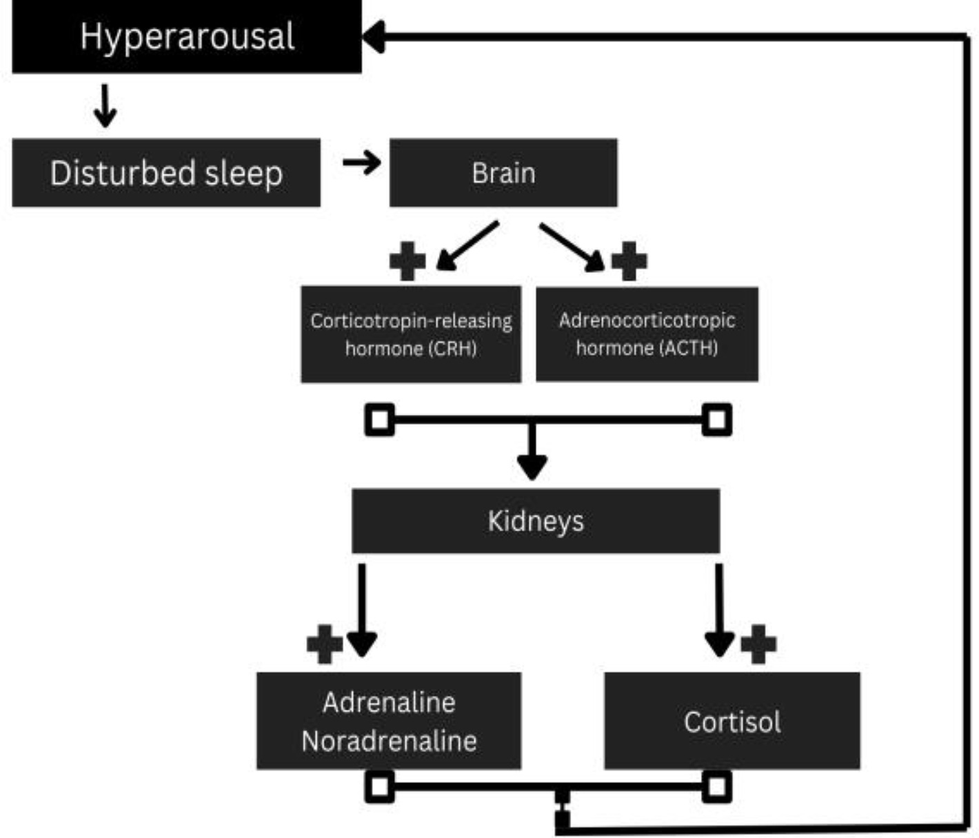 Hyperarousal is a key pathophysiological hypothesis in insomnia research. It suggests that a state of cognitive, emotional, and physiological hyperarousal persists both during the day and night, serving as a significant cause and sustaining factor for the condition [46]. The chronic physiological arousal associated with insomnia is thought to exacerbate mood disorders by disrupting neurochemical signaling and increasing cortisol levels. This bidirectional relationship between poor sleep and psychiatric symptoms further complicates both insomnia and its comorbidities, creating a cycle of sleep disruption and mental distress [47, 48, 49, 50, 51, 52]. Insomnia is a significant predictor of future mental illness. It can also arise as a result of or coexist with other psychiatric or medical conditions, especially depression and anxiety disorders. This cyclical relationship may further elevate the risk of developing conditions like depression, which is itself a recognized risk factor for cardiovascular disease and TTS. Additionally, depression can worsen the physical strain on the heart, creating a harmful feedback loop [53]. Therefore, insomnia should be considered a chronic condition with widespread effects on multiple physiological systems.