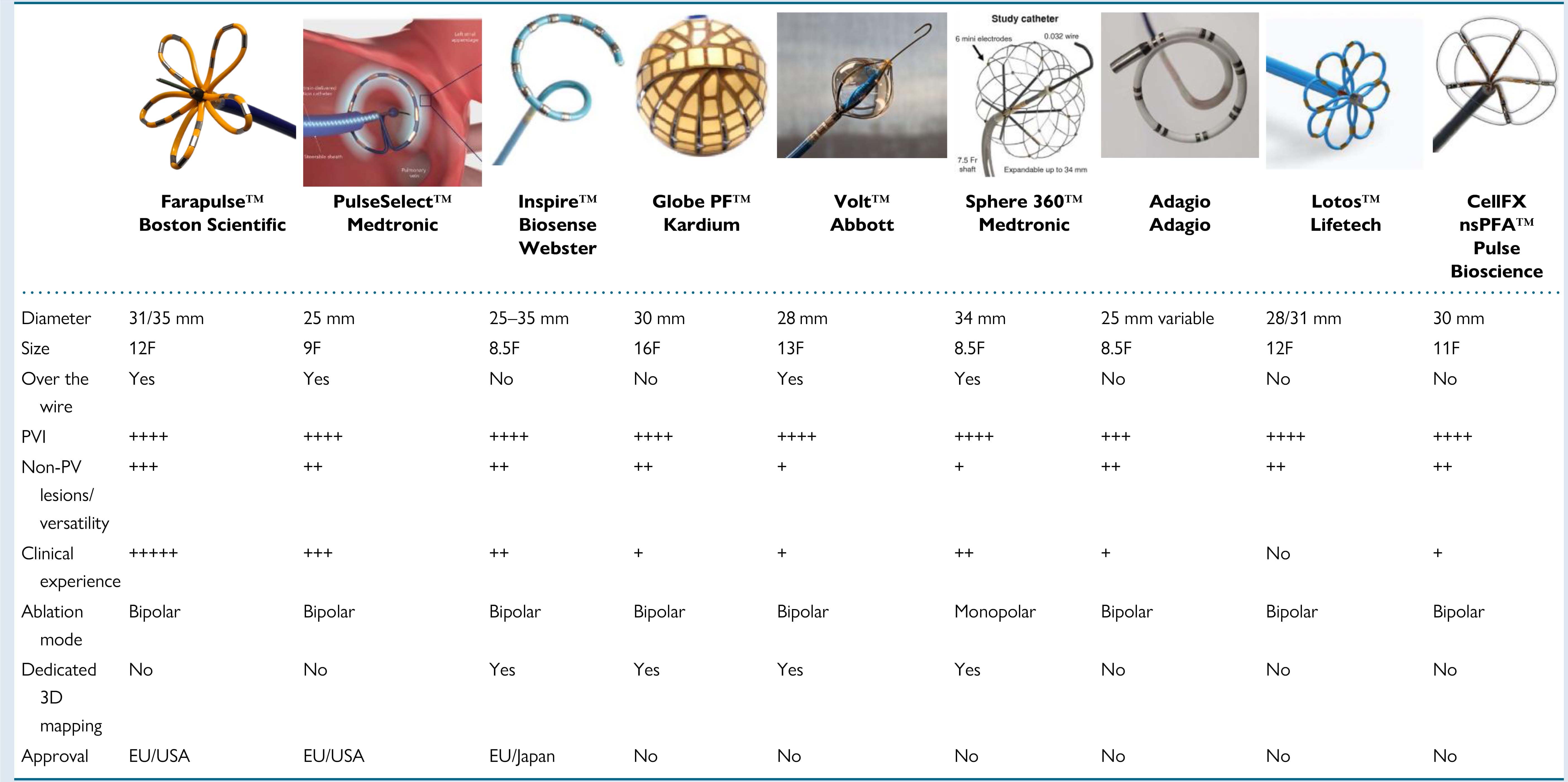 Today, PV isolation can be achieved by various percutaneous technologies that use different energy sources. To date, three energy sources have gained Food and Drug Administration (FDA) and Conformité Européene (CE) mark approval for this purpose: radiofrequency ablation (RFA), cryoballoon ablation (CBA) and more recently, pulsed field ablation (PFA).