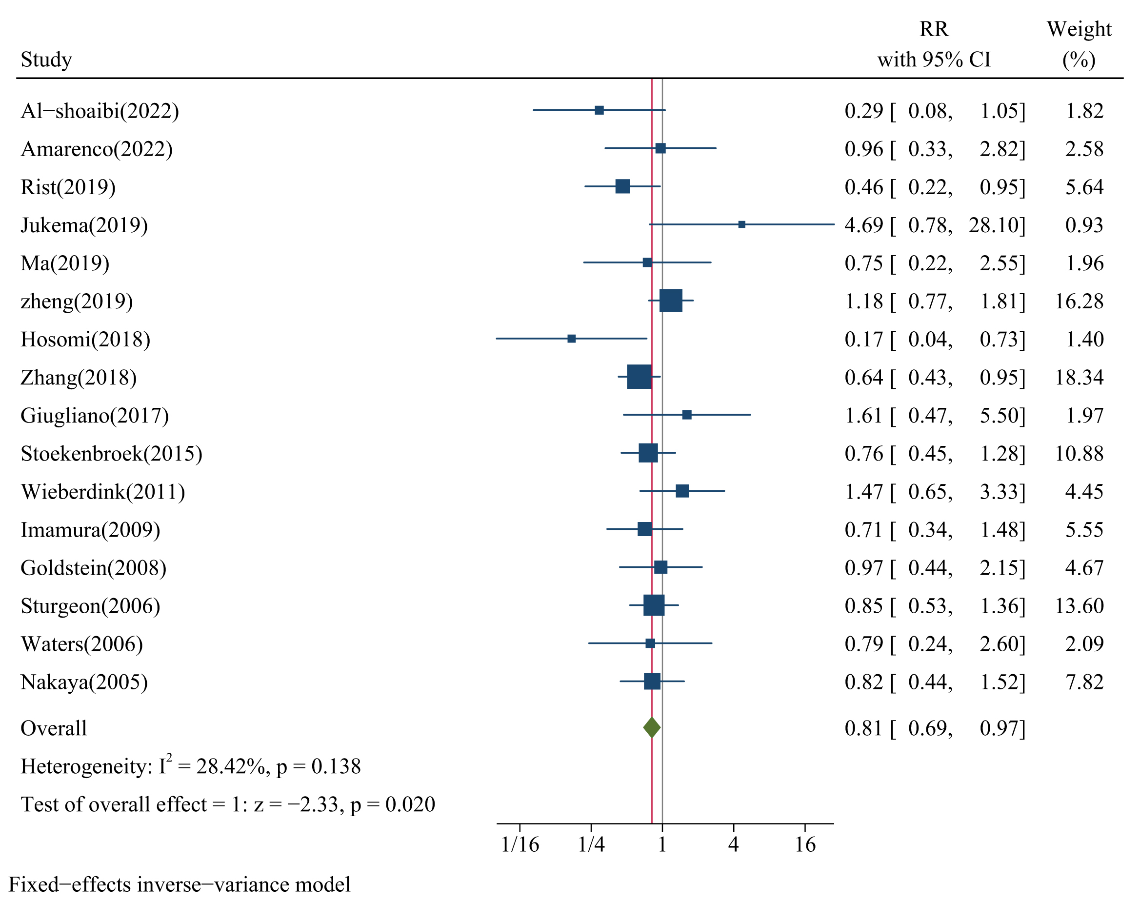 Our study regarded RRs as the effect size, with HRs considered equivalent to