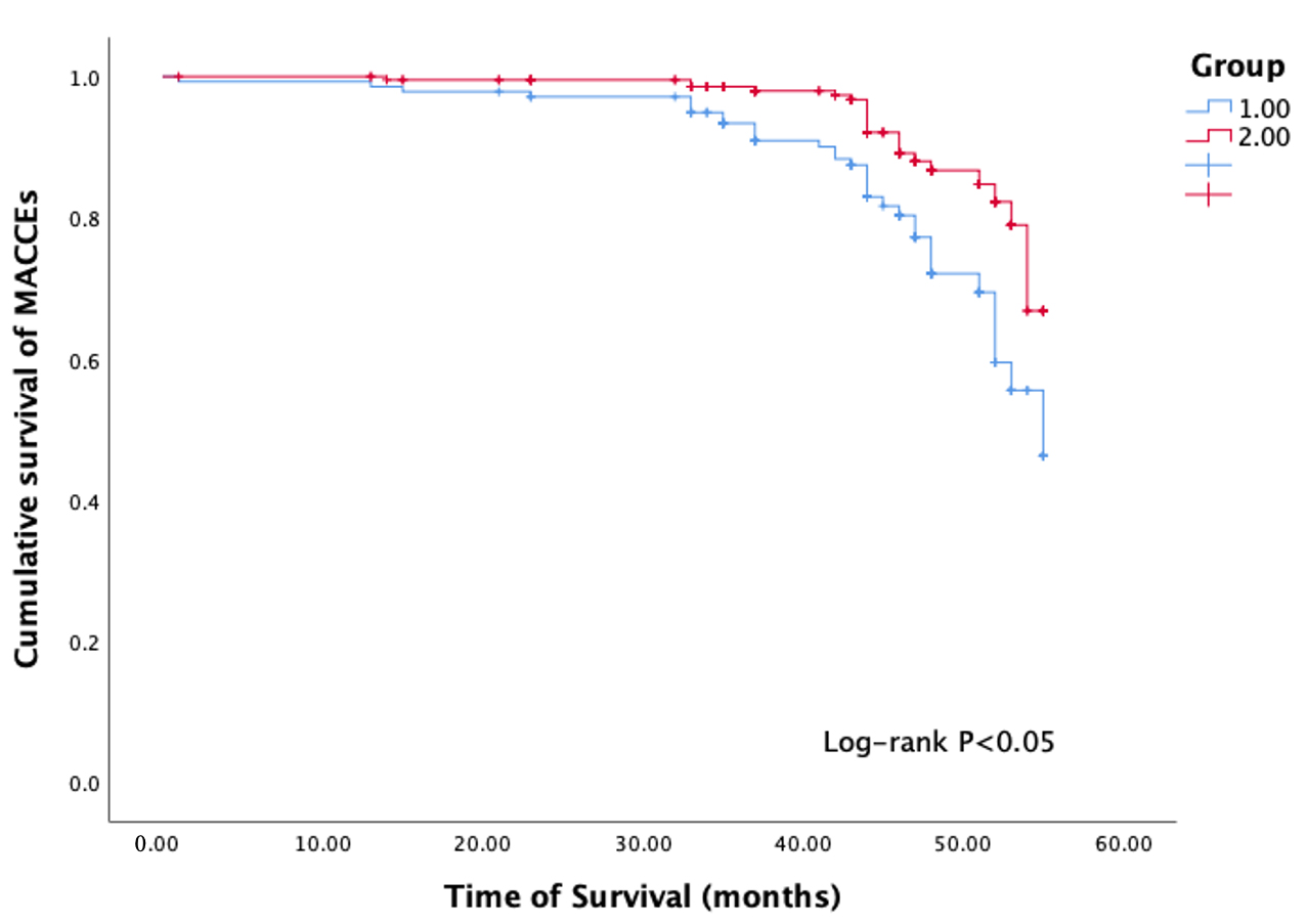 The primary outcome was major adverse cardiac and cerebrovascular events (MACCEs), including a composite of cardiovascular death, non-fatal MI, non-fatal stroke and cardiac rehospitalization. MI was confirmed in patients presenting with ischemic symptoms with elevated serum cardiac enzyme levels and/or characteristic electrocardiogram (ECG) changes. Ischemic stroke was defined as obstruction within a blood vessel supplying blood to the brain with imaging evidence by either magnetic resonance imaging (MRI) or computed tomography (CT) scans and new neurologic deficit lasting for at least 24 hours. Cardiac rehospitalization is defined as any hospital admission that occurs after the initial hospitalization due to cardiac-related issues, including a range of heart-related conditions and complications.