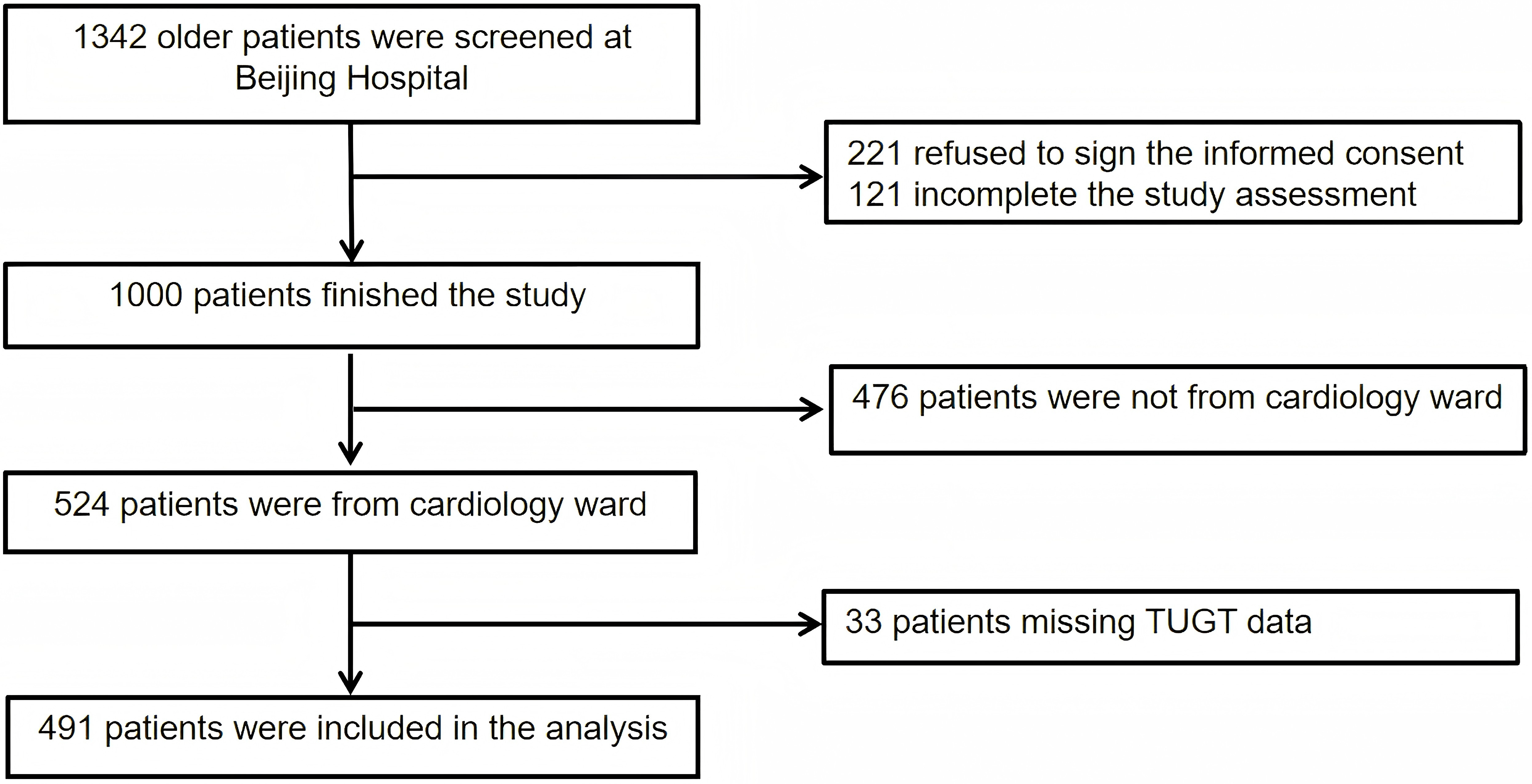 A total of 491 older patients from the cardiology ward were included in the study. The participant inclusion process is illustrated in Fig. 1.