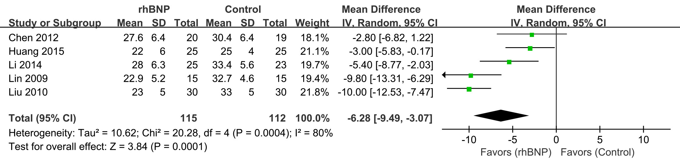 Fig. 7. Comparison of pulmonary artery pressure (PAP). rhBNP, recombinant human brain natriuretic peptide; SD, standard deviation; df, degrees of freedom.