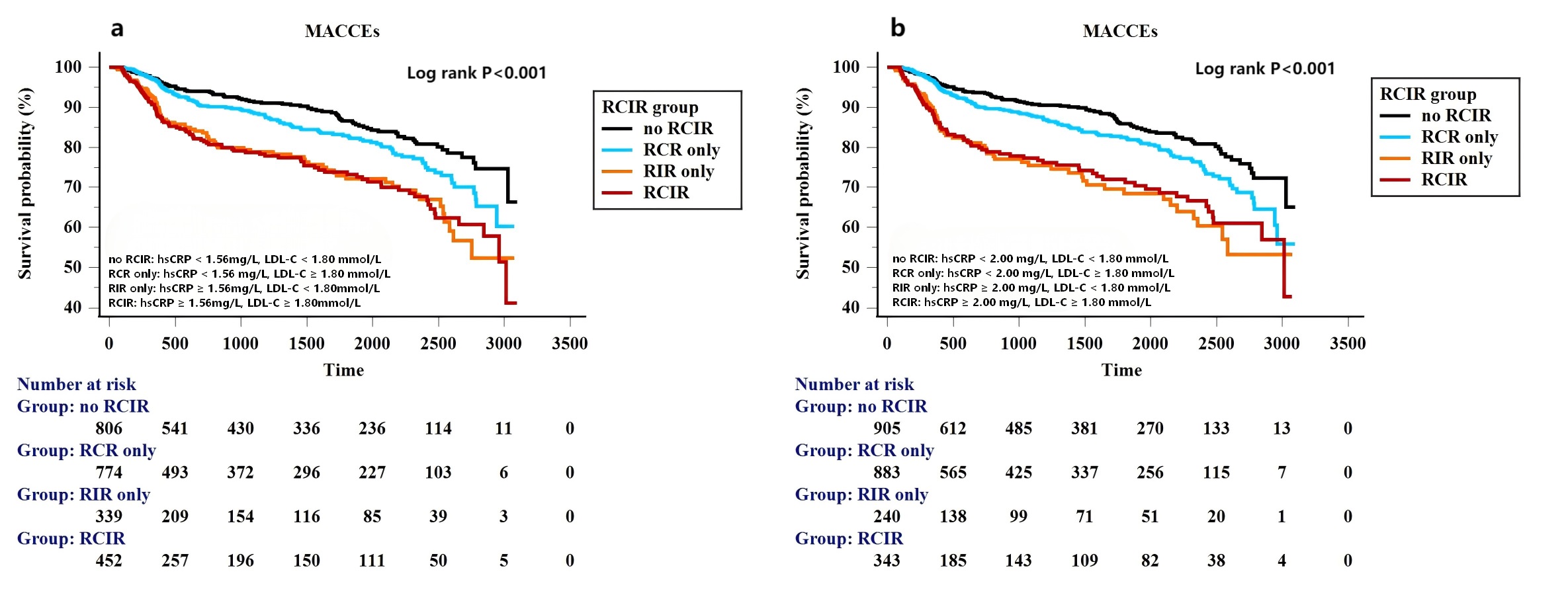 Due to the aging population and the increasing prevalence of cardiometabolic risk factors, cardiovascular deaths have become the leading cause of mortality in China [1]. Statin has been recognized as the cornerstone of secondary prevention due to its effectiveness in lowering the rates of recurrent myocardial infarction, stroke and cardiovascular death [2]. However, statin-treated patients, especially those with advanced atherosclerotic cardiovascular disease (ASCVD), still suffer from a relatively high incidence of recurrent events even after an early revascularization strategy, an issue commonly ascribed to the problem of ‘residual risk’ [3]. Residual cholesterol risk (RCR) and residual inflammatory risk (RIR) were both shown to be important predictors for the prognosis of ASCVD patients and therapies targeting cholesterol and inflammation delivered positive results [4, 5, 6, 7, 8]. However, there is a lack of serial monitoring of hypersensitive C-reactive protein (hs-CRP) and low-density lipoprotein cholesterol (LDL-C) values during medical follow-up. Therefore, the relative importance of inflammatory and cholesterol risk for predicting recurrent adverse clinical events after accepting statins remains elusive. In addition, the inflammatory burden, especially in East Asian patients, is generally lower than their counterparts in Western populations [9, 10, 11]. Whether the established standard (hs-CRP