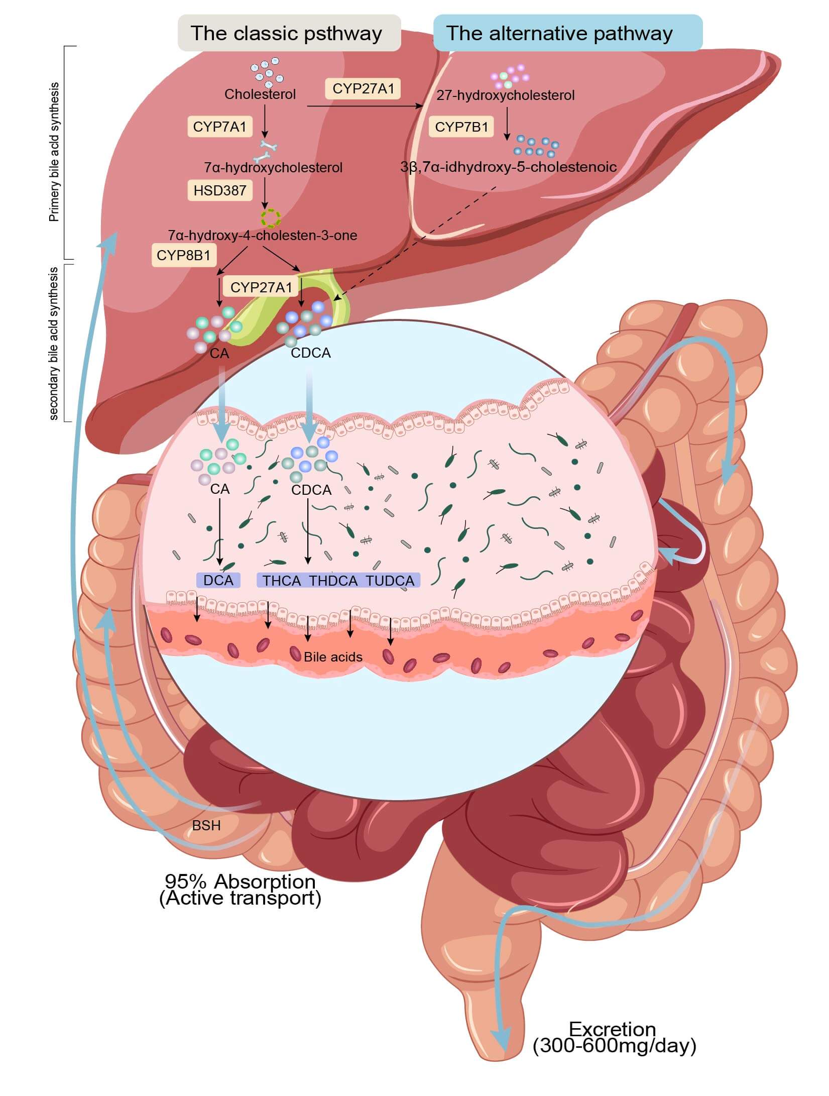synthesis of BAs to their biotransformation in the gastrointestinal tract,