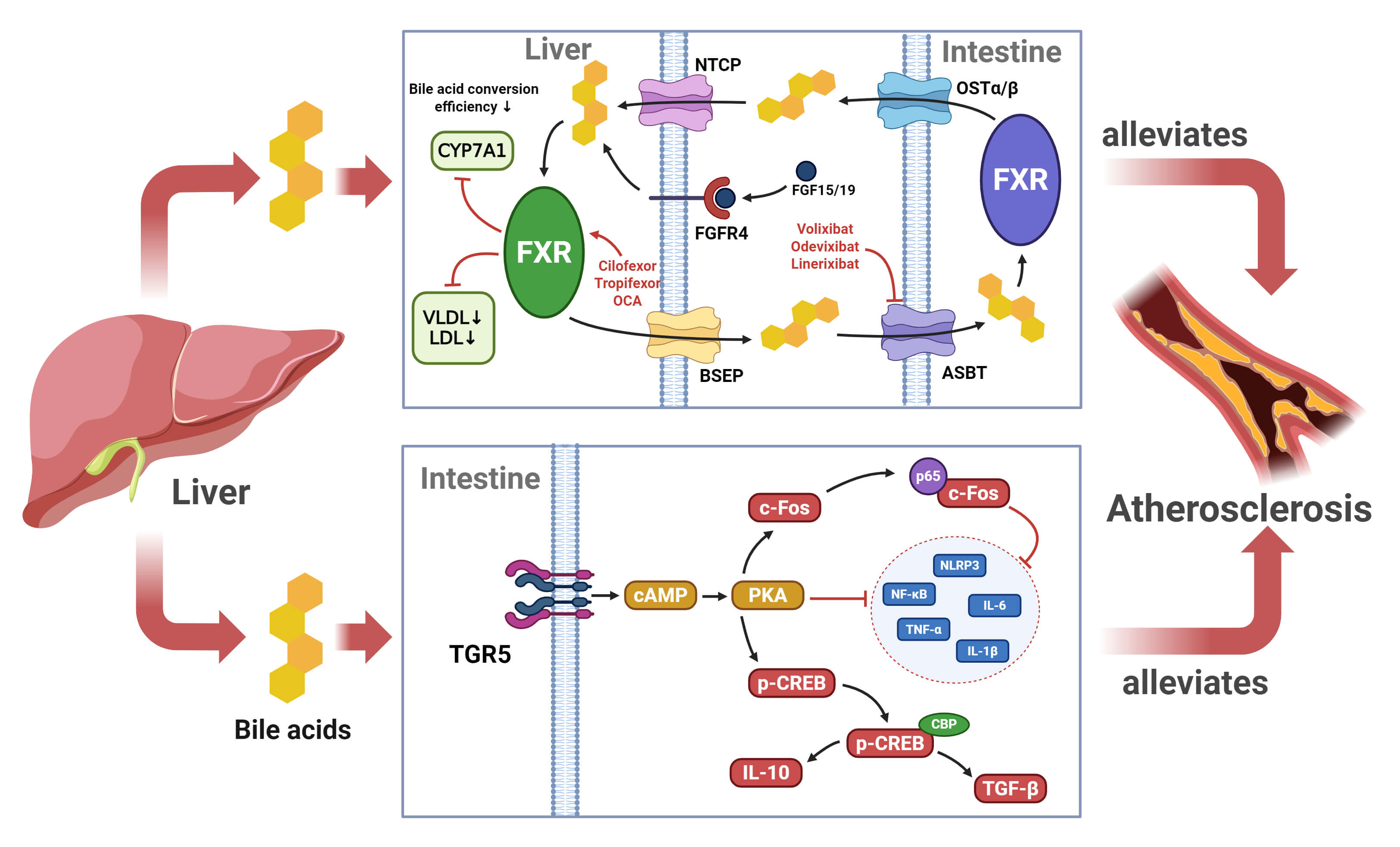 atherosclerosis progression by binding to TGR5 and FXR receptors to modulate the