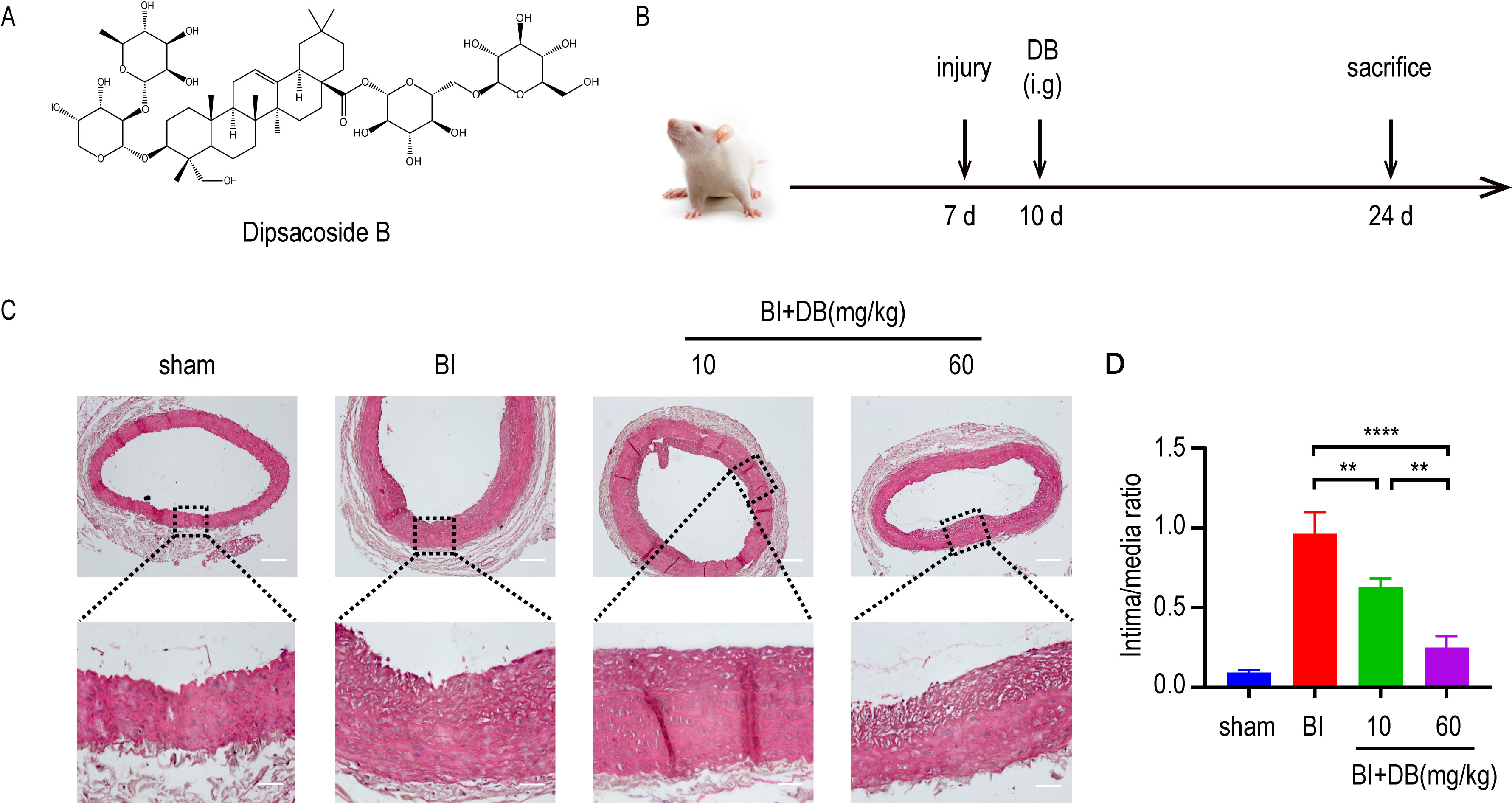 Fig. 1.DB inhibited neointimal formation. (A) The chemical structure