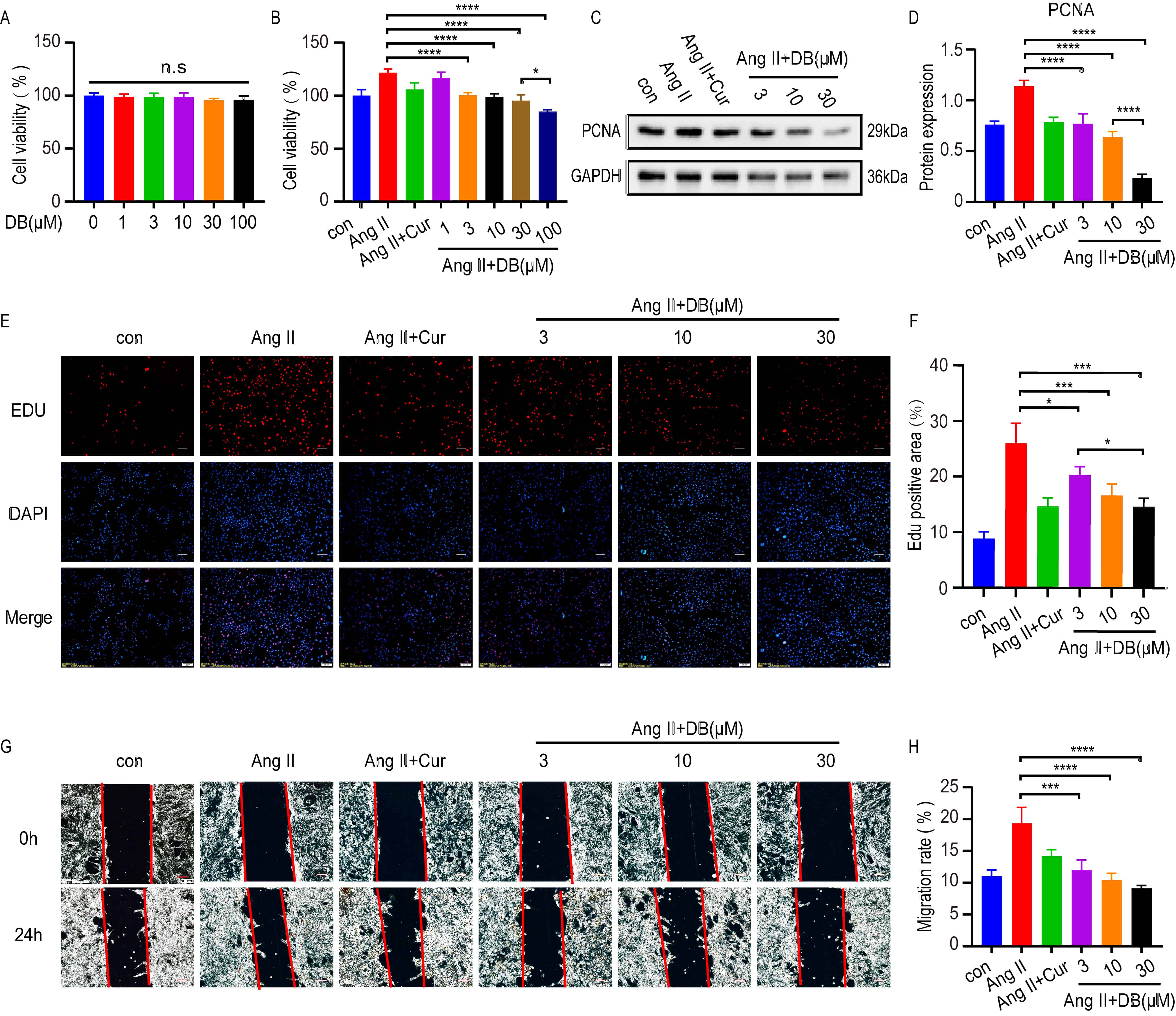 the role of DB on the Ang-II induced proliferation and migration of VSMCs. CCK-8
