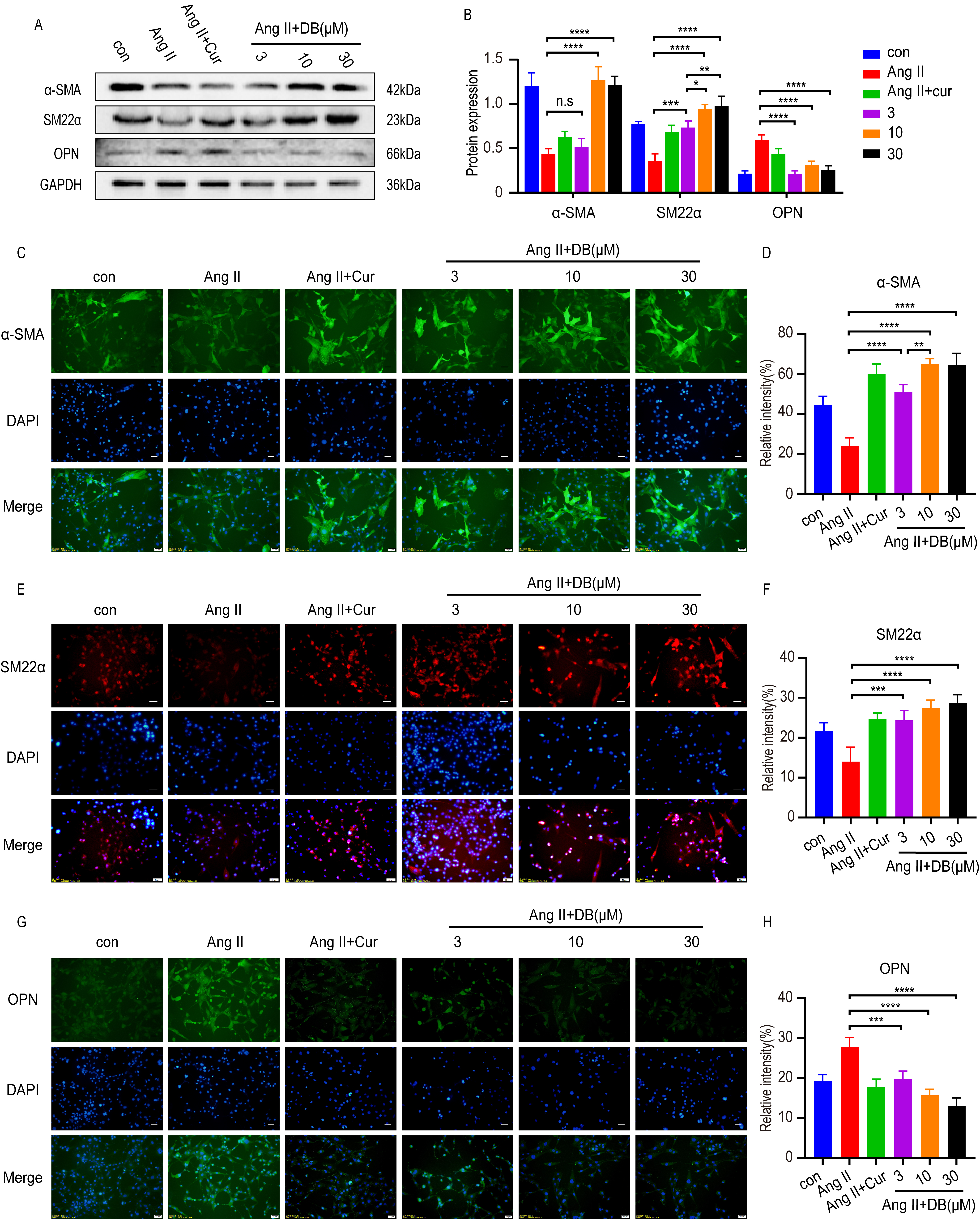 Fig. 3.DB exerts its role by modulating phenotype switch of VSMCs. (A)