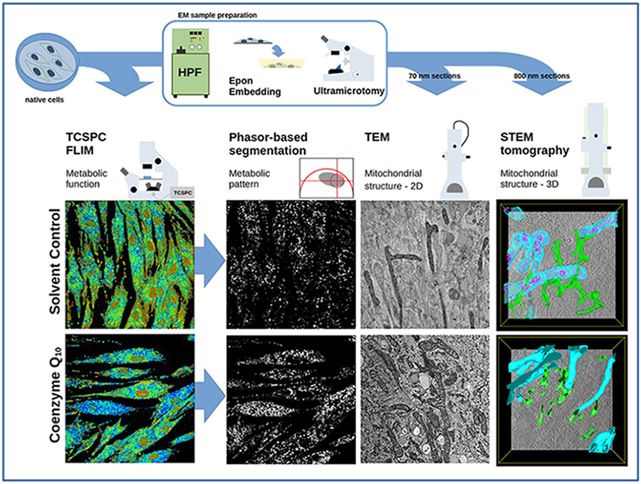 The combination of FLIM and EM enables new insights into the mode of action of CoQ10 and its role as a cellular energizer.